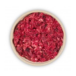 Durch den beigefügten Blutanteil wird dieses Produkt zur guten Mineralquelle und sorgt vor allem für eine Extraportion Eisen. Die Ergänzung von Möhren und Rote Beete aus Deutschland runden dieses Komplettmenü optimal ab und liefern neben pflanzlichen Kohlenhydraten und Vitaminen auch sekundäre Pflanzenstoffe zur Anregung der Verdauung. Roter Beete wird darüber hinaus eine krebsvorbeugende Wirkung zugeschrieben.