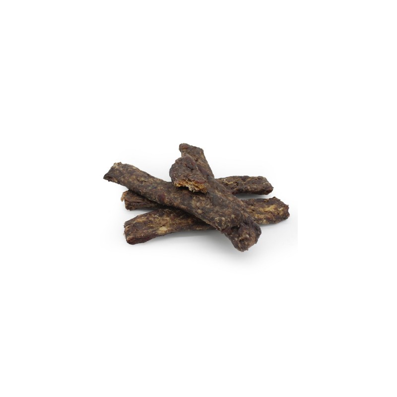 Rindfleisch zählt zu den gängigsten Fleischsorten beim Barfen und kann auch getrocknet, in Form von Snacks und Kauartikeln, ganz prima verfüttert werden. Es ist reich an wichtigen Nährstoffen und liefert durch seinen recht hohen Fettgehalt wichtige Energie. Mit unseren Fleischstreifen vom Rind kannst du deinem Vierbeiner eine ganz besonders schmackhafte und gesunde Freude bereiten, denn sie sind zu 100 % natürlich, hergestellt in unserer hauseigenen Produktion und Trocknung.