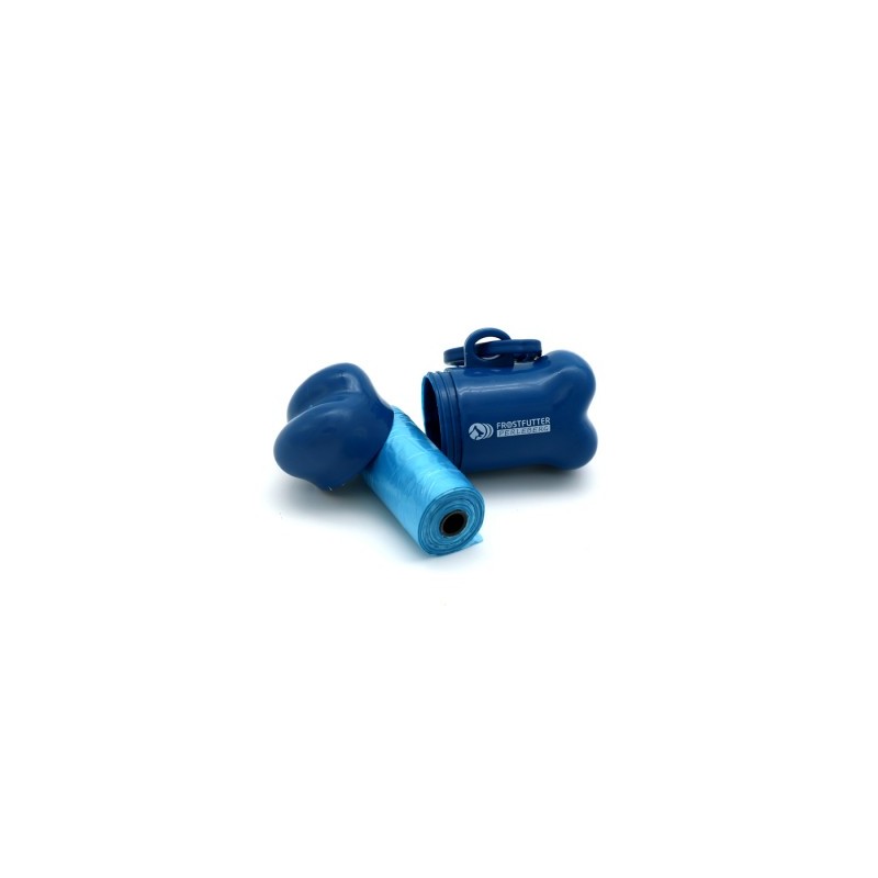 Der Kotbeutelspender in Knochenform enthält eine Rolle Kotbeutel mit je 15 Beuteln und lässt sich beliebig oft nachfüllen. Die Beutel können durch die Öffnung an der Vorderseite gezogen und einfach an der dafür vorgesehenen Perforation abgerissen werden. Zur Befestigung am Gürtel, der Leine oder der Tasche hat der Kotbeutelspender einen praktischen, leicht zu öffnenden Ring.
